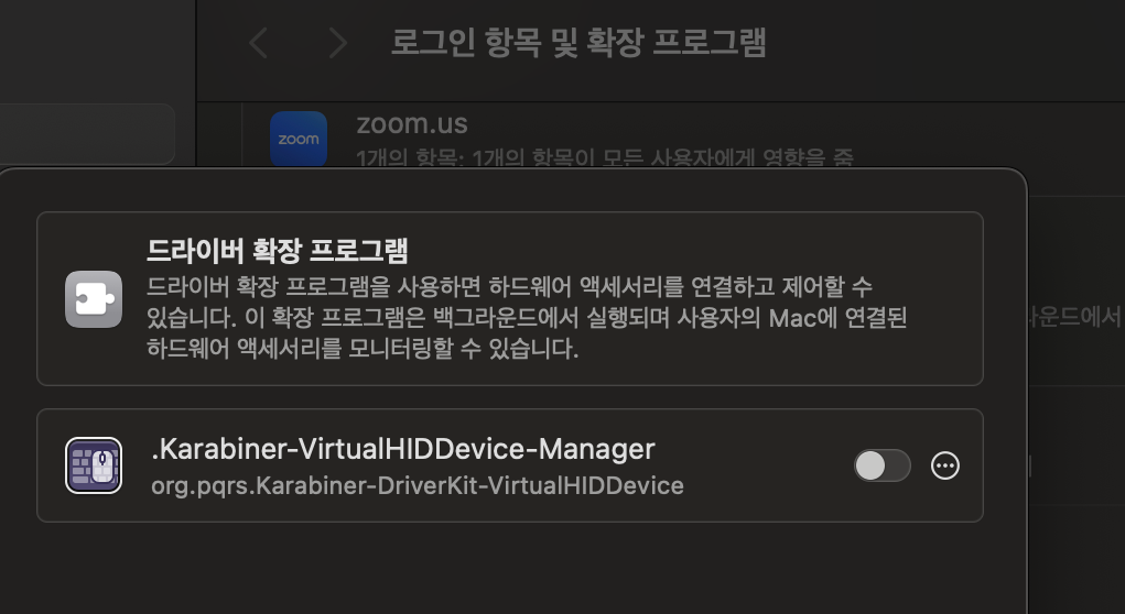 마지막으로, 드라이버 확장 프로그램에서 가상 키보드도 연결해준다.