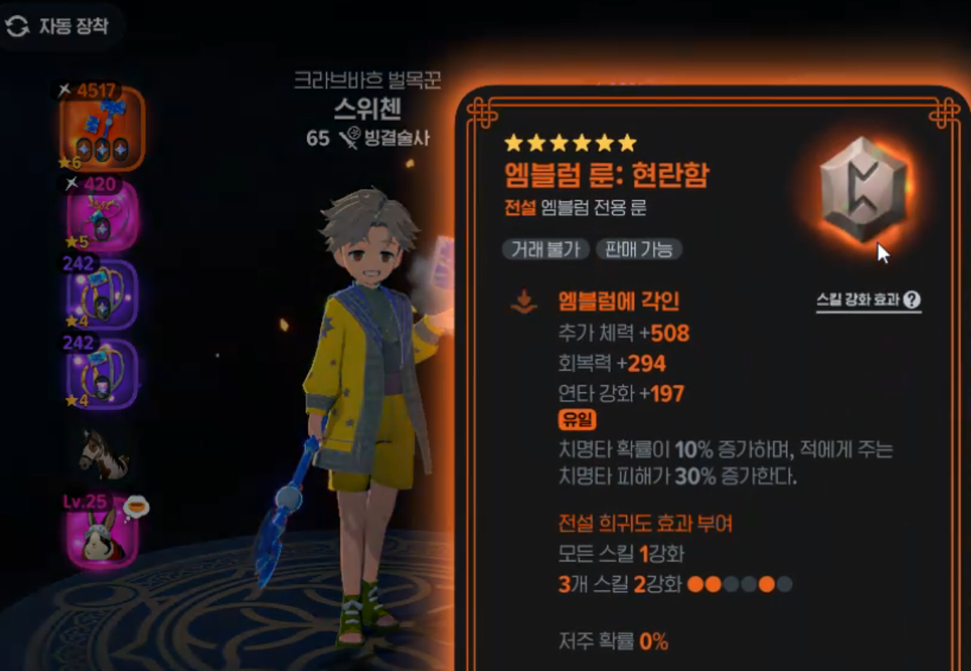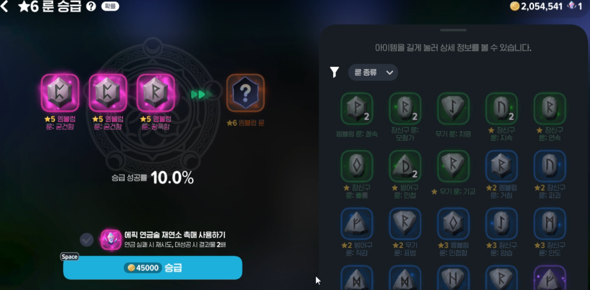 그동안 전설 룬 승급을 15번은 한 것 같은데, 전부 실패했었다. 10%는 아닌듯..