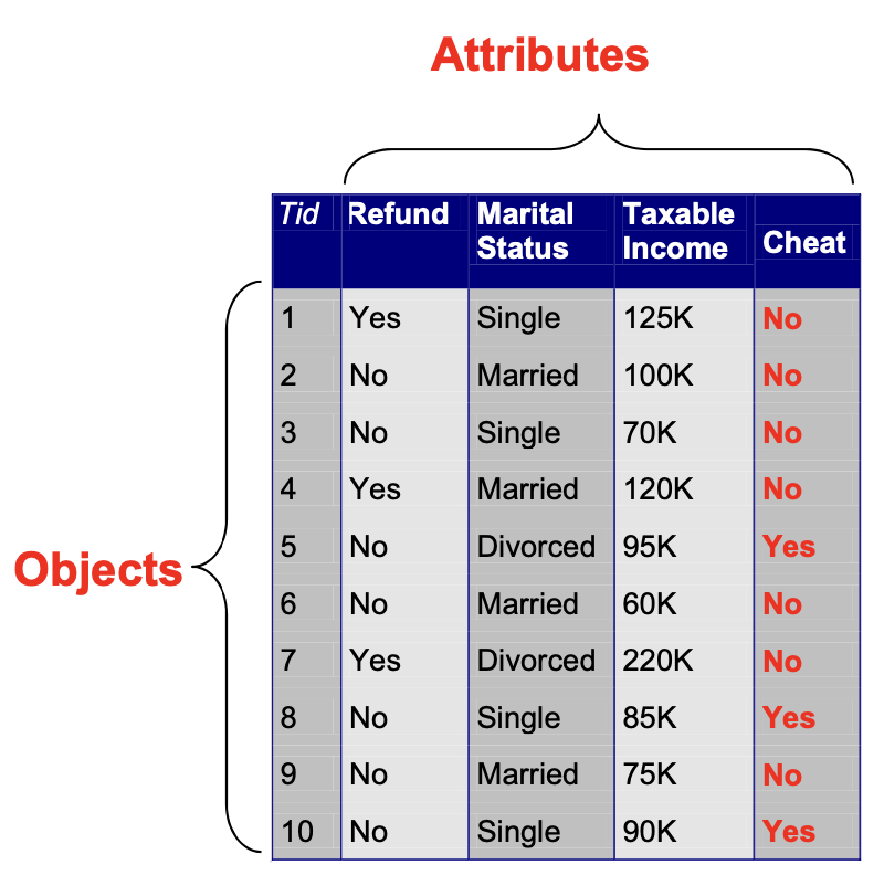데이터 집합(data set)은 데이터 객체(data object)의 모임이다.